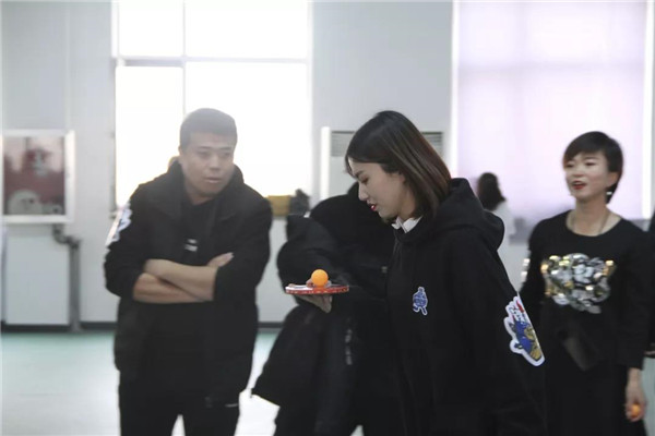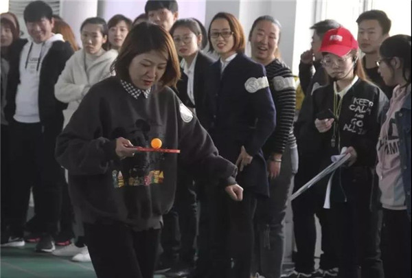 在比賽中隊(duì)友們相互鼓勵(lì),相互配合。乒乓球接力不僅考驗(yàn)隊(duì)員的速度、耐心,更考驗(yàn)著隊(duì)員們團(tuán)結(jié)協(xié)作的能力,以及彼此的默契程度?,F(xiàn)場(chǎng)游戲活動(dòng)中,比賽氣氛和諧快樂(lè),大家都被簡(jiǎn)單的互動(dòng)游戲所感染,一陣陣吶喊助威聲從運(yùn)動(dòng)場(chǎng)上傳來(lái)。