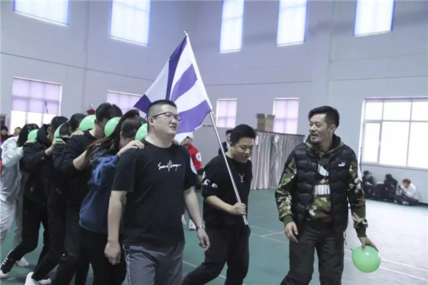看我們心連心,連著一起向前走。本游戲要求裁判宣布開(kāi)始后,6名隊(duì)員首先吹氣球,并將氣球系好;將系好的氣球放于2人之間并用額頭頂住進(jìn)行前進(jìn),期間有氣球掉落則重新開(kāi)始;隊(duì)伍行進(jìn)距離50米,直至最后一個(gè)人穿過(guò)終點(diǎn)線(xiàn),用時(shí)最少名次越前。通過(guò)本游戲來(lái)培養(yǎng)大家的團(tuán)隊(duì)精神,提高隊(duì)員們配合、協(xié)作的能力。